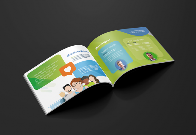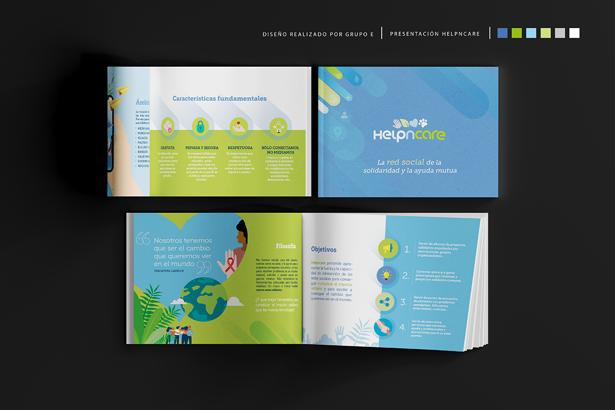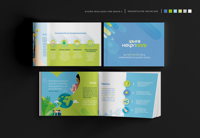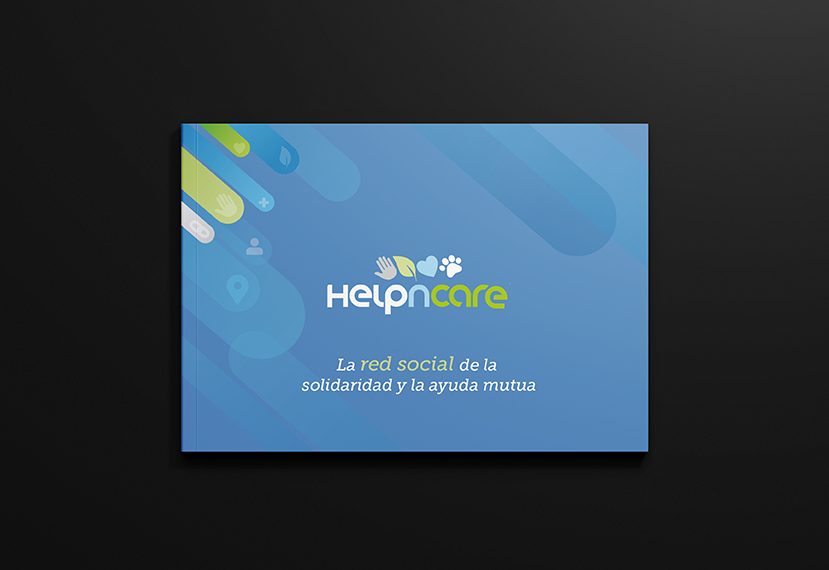 Folleto ilustrado para empresa dedicada a la solidaridad helpncare