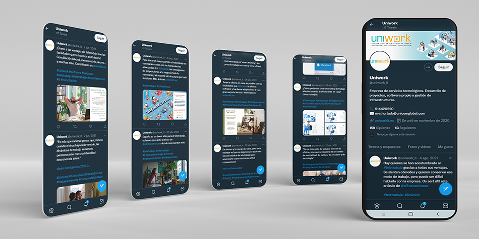 Gestión de instagram y facebook para empresa tecnológica Uniwork. Realización de creatividades y producción de material audiovisual, reels, stories, sorteos, gestión de la comunidad, dinamización y networking.